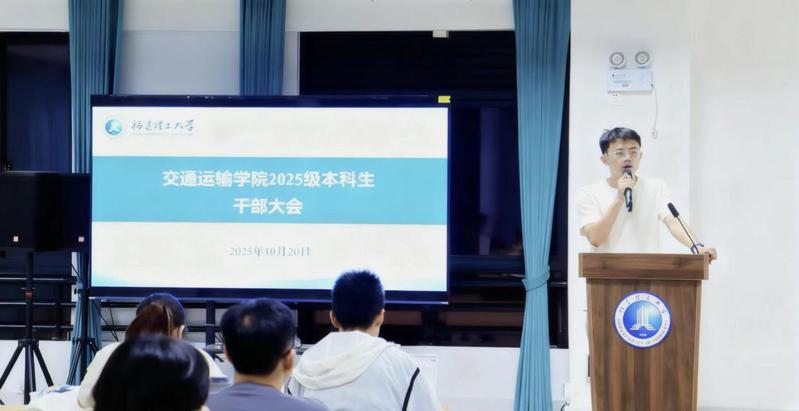 为搭建年级学生工作核心框架,明确团学干部职责使命,10月20日晚,交通运输学院2025级本科生干部大会在教学实验楼六楼会议室顺利召开。2025级辅导员申杨敏老师以及2025级全体团总支干部、各班班委出席会议。