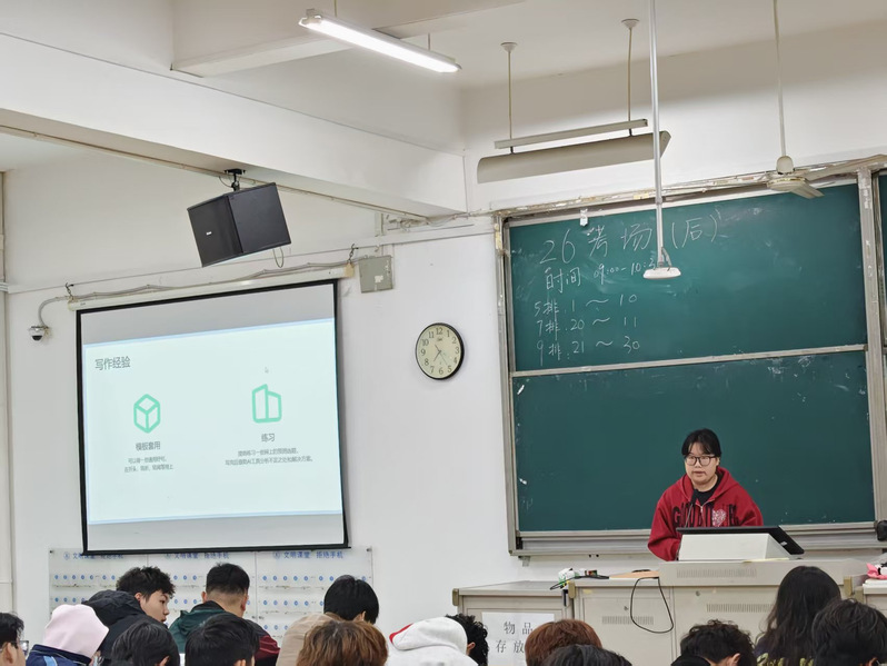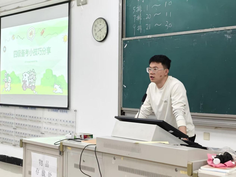 为帮助2025级同学科学备考英语四级考试,掌握实用方法与应试技巧,3月22日晚19:00,交通运输学院2025级团总支在北区大教西4举办英语四级备考经验分享会。活动邀请年级12位四级成绩500分以上的优秀同学分享实战经验,全体2025级本科生参会。